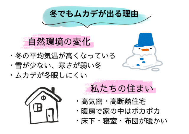 そう思われがちですが、実はムカデは寒くなると暖かい場所を求めて家の中に入ってきます。